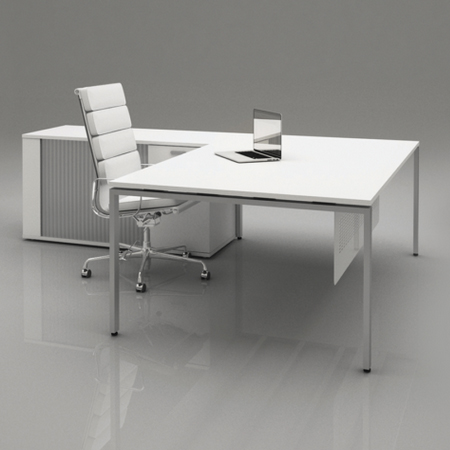 DESK WITH 50 X 25MM STEEL LEGS, FLOATING TOP WITH 2 X SUPPORT BEAMSN UNDER, WIRE BASKET AND CABLE MANAGEMENT PORT